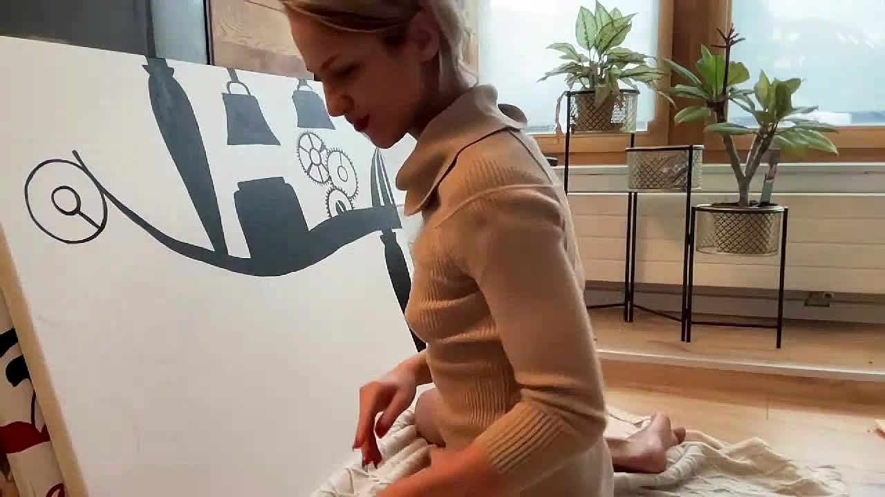 Beautiful painter sofi goldfinger explores new experiences in her art studio