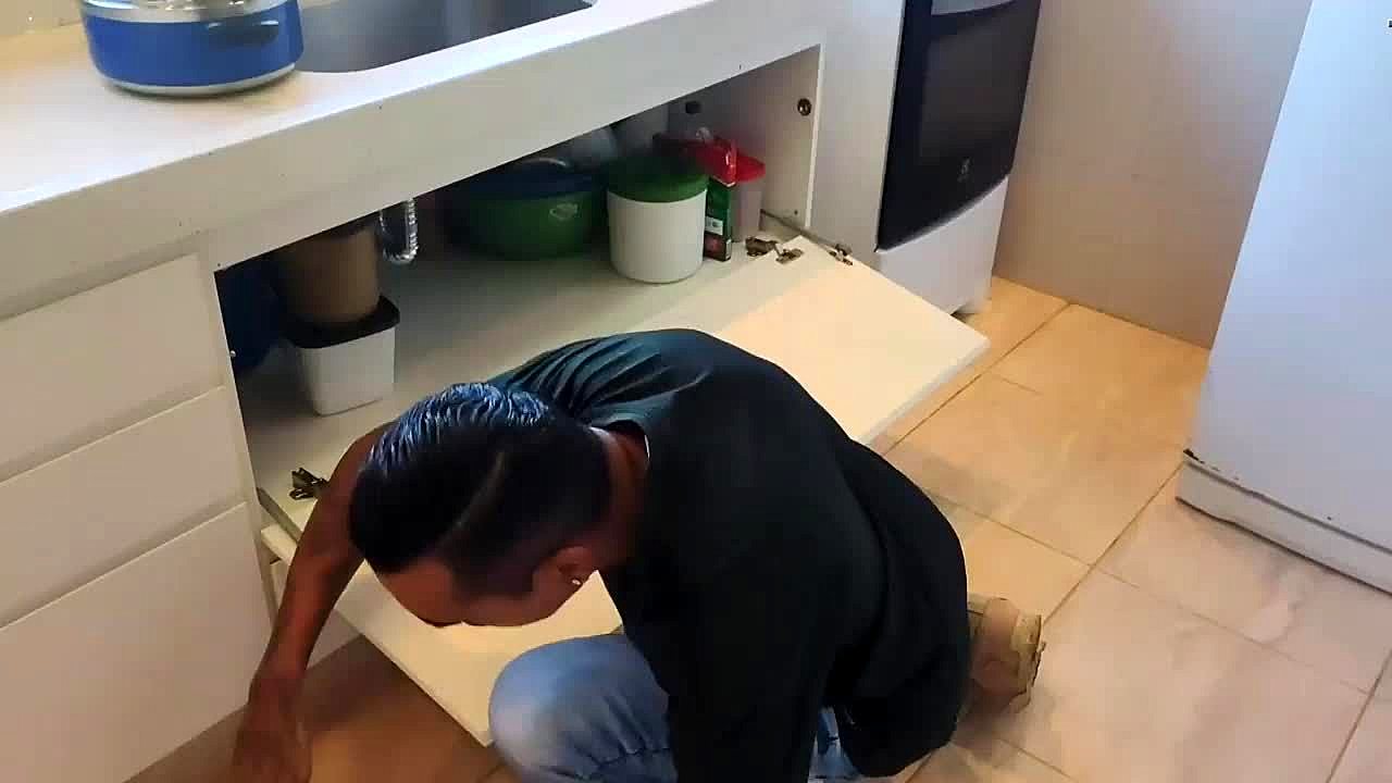 Hot wife deepthroats plumber in kitchen with cum finish