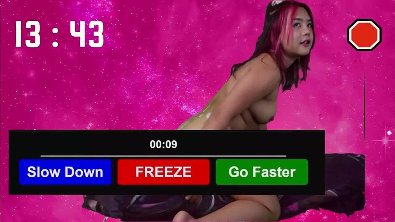 Blonde babe strips and masturbates in a quick challenge, cumming in five minutes