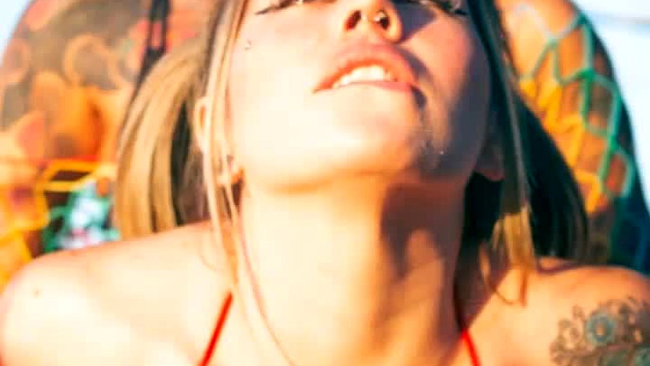 punk chick, show off those tattoos during photo shoot!