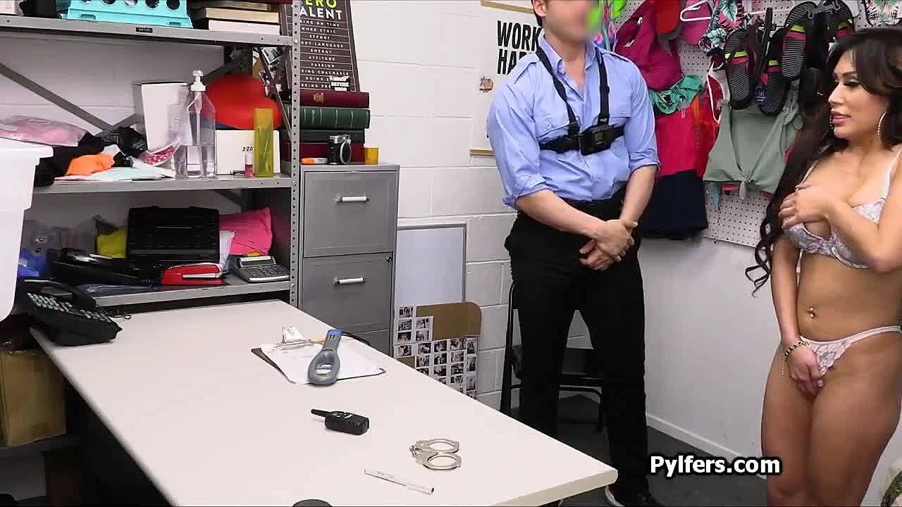 Suspected shoplifter denies all burglary claims in garage office punishment with rough doggystyle.