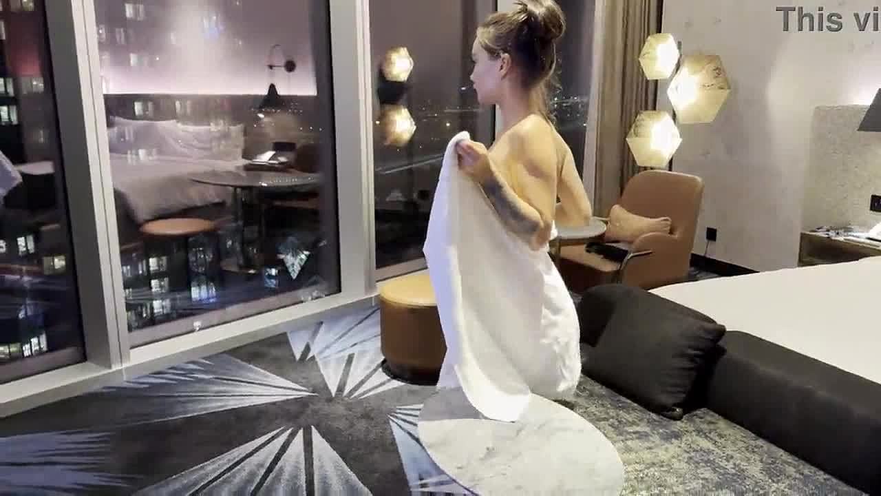 Big girl spreads legs in hotel room, ready to blow!