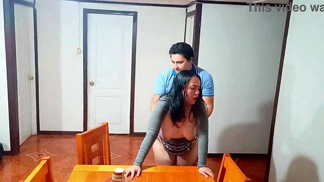 Stepson Fucks Stepmom's Big Tits on Kitchen Table